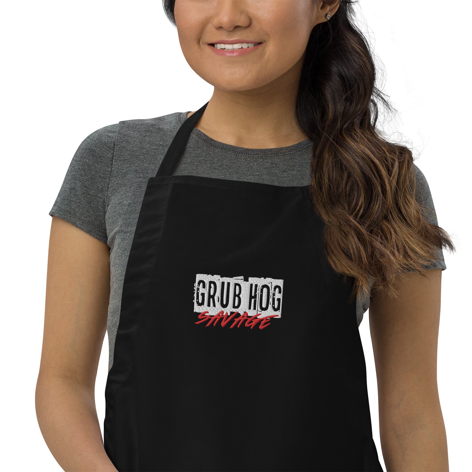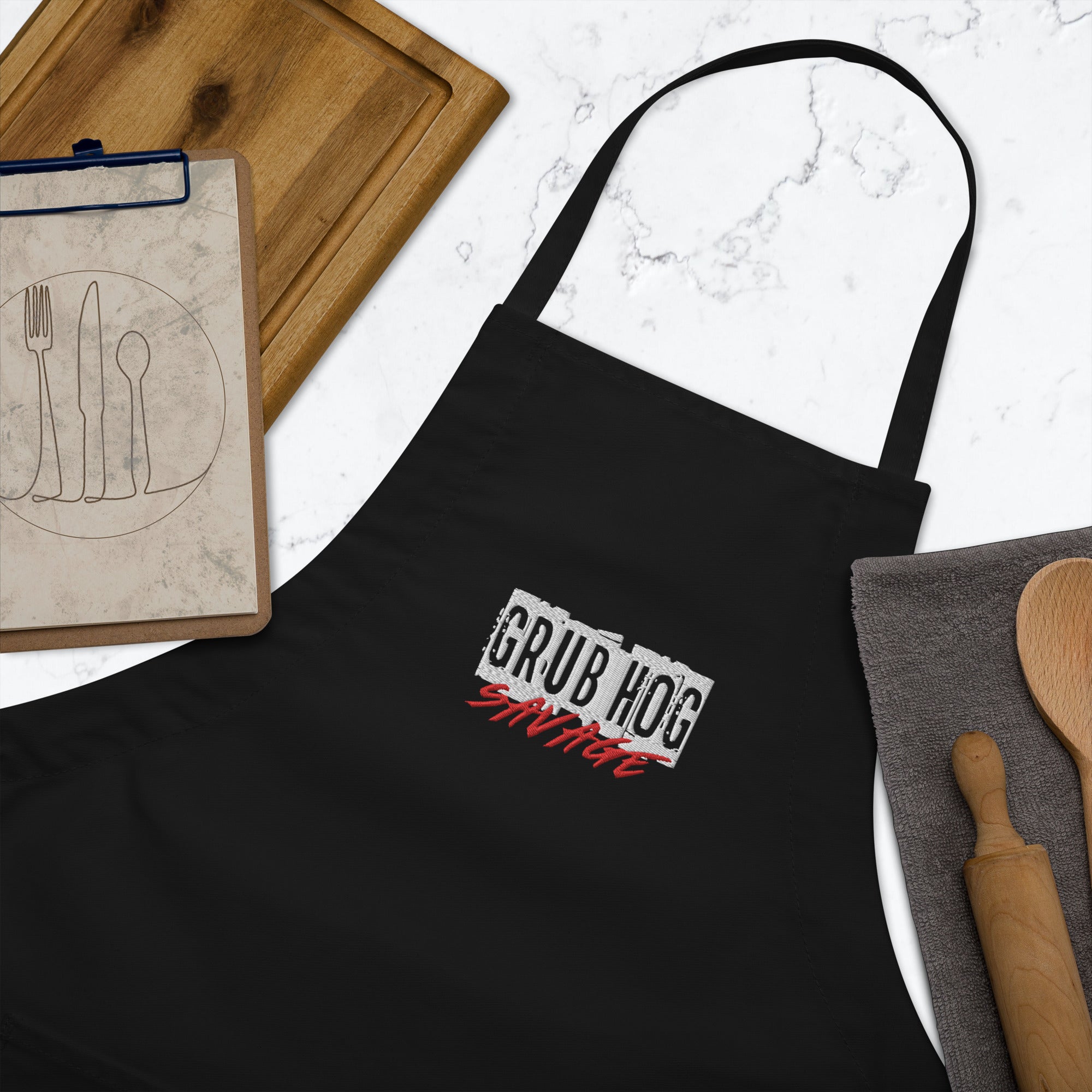 Thanks to this embroidered apron you don't have to worry about keeping your clothes clean when cooking!...